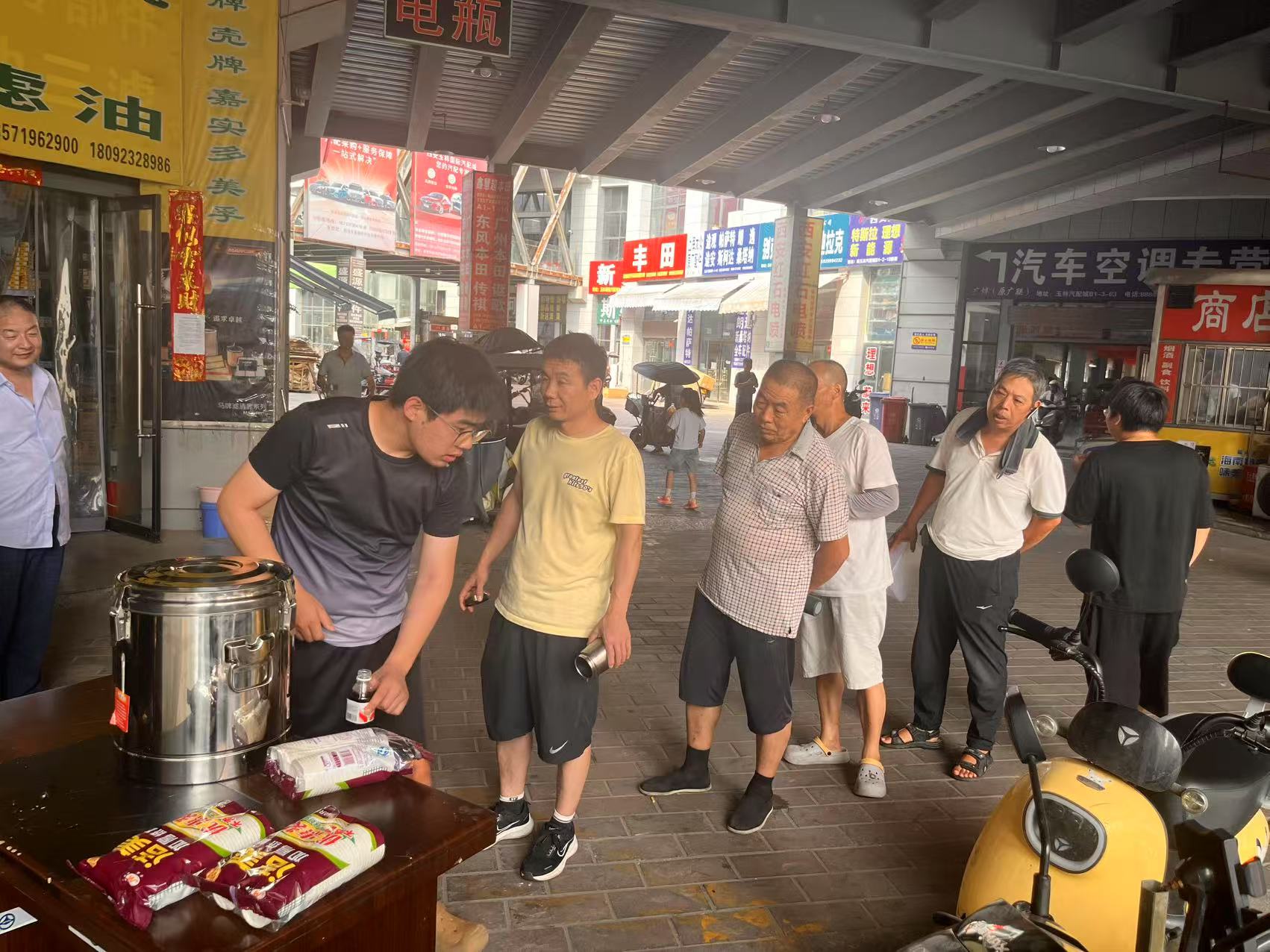 7 月 16 日,玉林公司以黨建品牌 “紅引擎·燃動力” 為抓手,組織20余名黨員干部成立志愿服務隊,啟動 “夏日送清涼” 活動。500 份現場熬制的綠豆湯裝入保溫桶,清甜香氣中透著市場對商戶和消費者的牽掛。志愿者分發(fā)降溫飲品并與商戶親切交流,詳細記錄商戶對市場服務的建議,普及防暑知識,手把手教學中暑應急處理技巧,將 “服務商戶、助力經營” 的理念融入每一個細節(jié)。